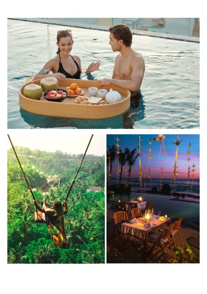 | We don’t just provide a room and a flight. We provide the moments that stay with you forever. When you book our Premium holiday Package, these high-end experiences are Complimentary: The Iconic Bali Swing: Soar over the lush Ubud jungle and capture that world-famous photo. It’s exhilarating, beautiful, and completely included in your package. The Luxury Floating Breakfast: Start your morning like royalty. A beautifully arranged breakfast tray in your private pool—the ultimate Instagrammable moment, on the house. Romantic Candle Night Dinner: We set the stage for a private, multi-course dinner under the Balinese stars. Whether it’s for a honeymoon or an anniversary, this is the pinnacle of island romance. |