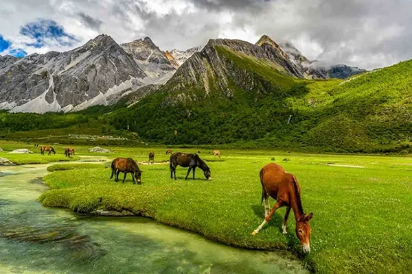 After breakfast, drive to Pahalgam (7200 ft) – “Village of Shepherds” for overnight stay. (97 kms / approx. 2 hrs)